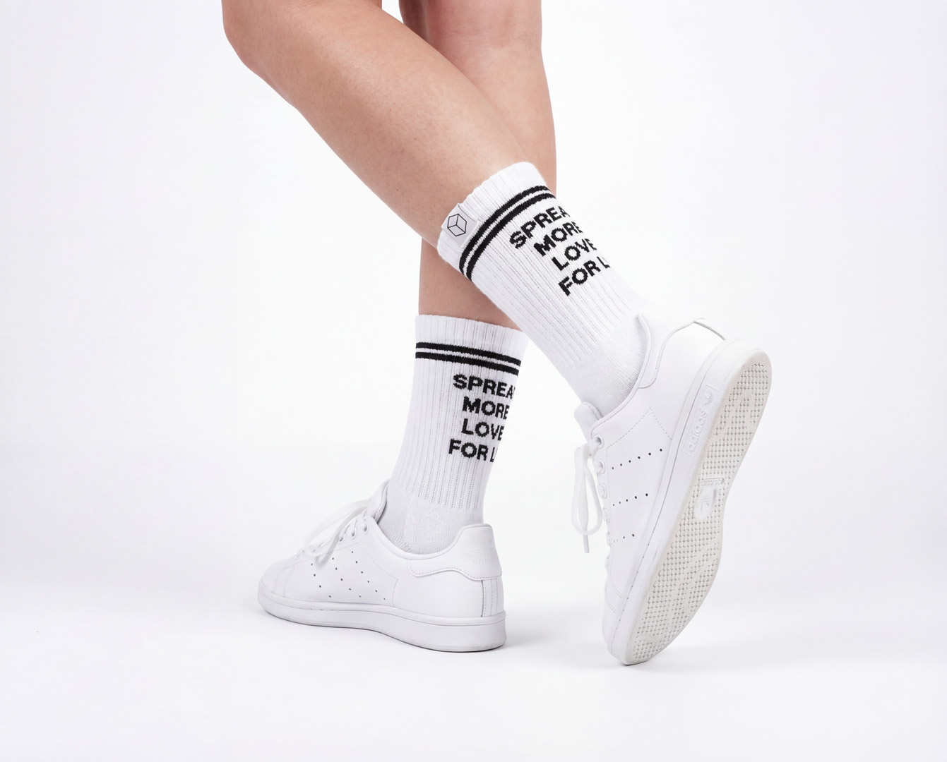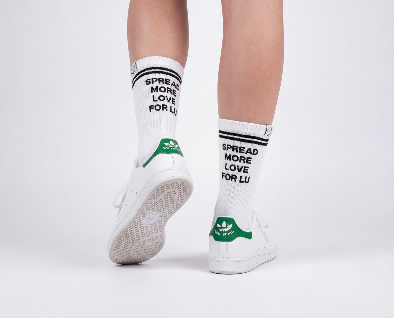 Die SPREAD MORE LOVE FOR LU-Edition unserer Statement Socken ist Half Thickend, heißt: Die Socke ist dort dicker, wo du es brauchst – an Ferse, Zehen und Ballen.