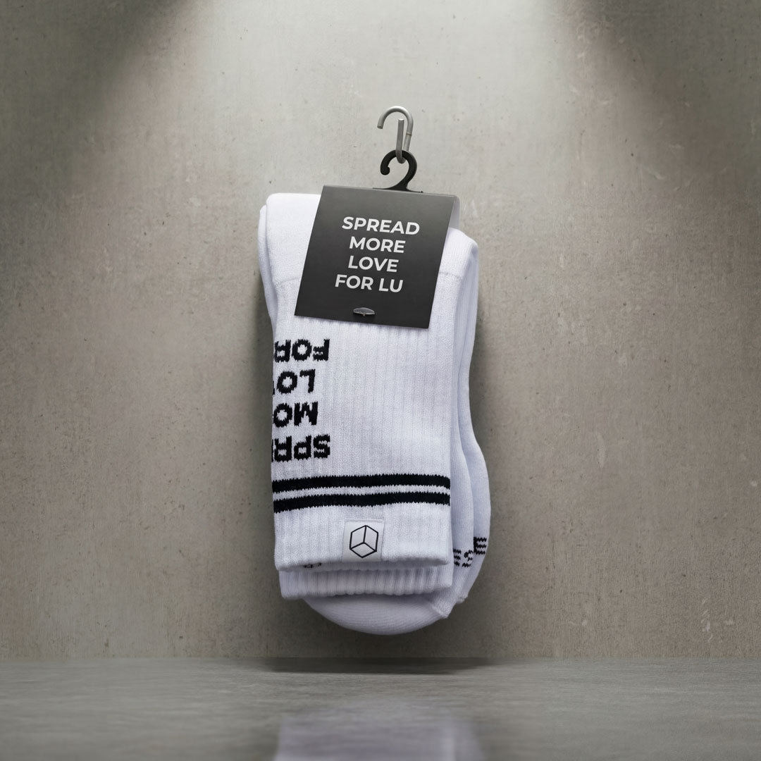 Die WOW Statement Socken sind unsere Liebeserklärung an die Stadt. Stylische, weiße Sportsocken mit dem beliebten WOW-Slogan „SPREAD MORE LOVE FOR LU“ platziert als Eyecatcher im Fersenbereich. Der kleine WOW-Würfel als hochwertig genähter Patch am Bund sorgt für das besondere Hingucker-Detail, „WOW Ludwigshafen“ prangt elegant auf den Zehen eingestickt und unten in der Sohle versteckt sich unser Secret Code #SMLFL für alle True Locals.